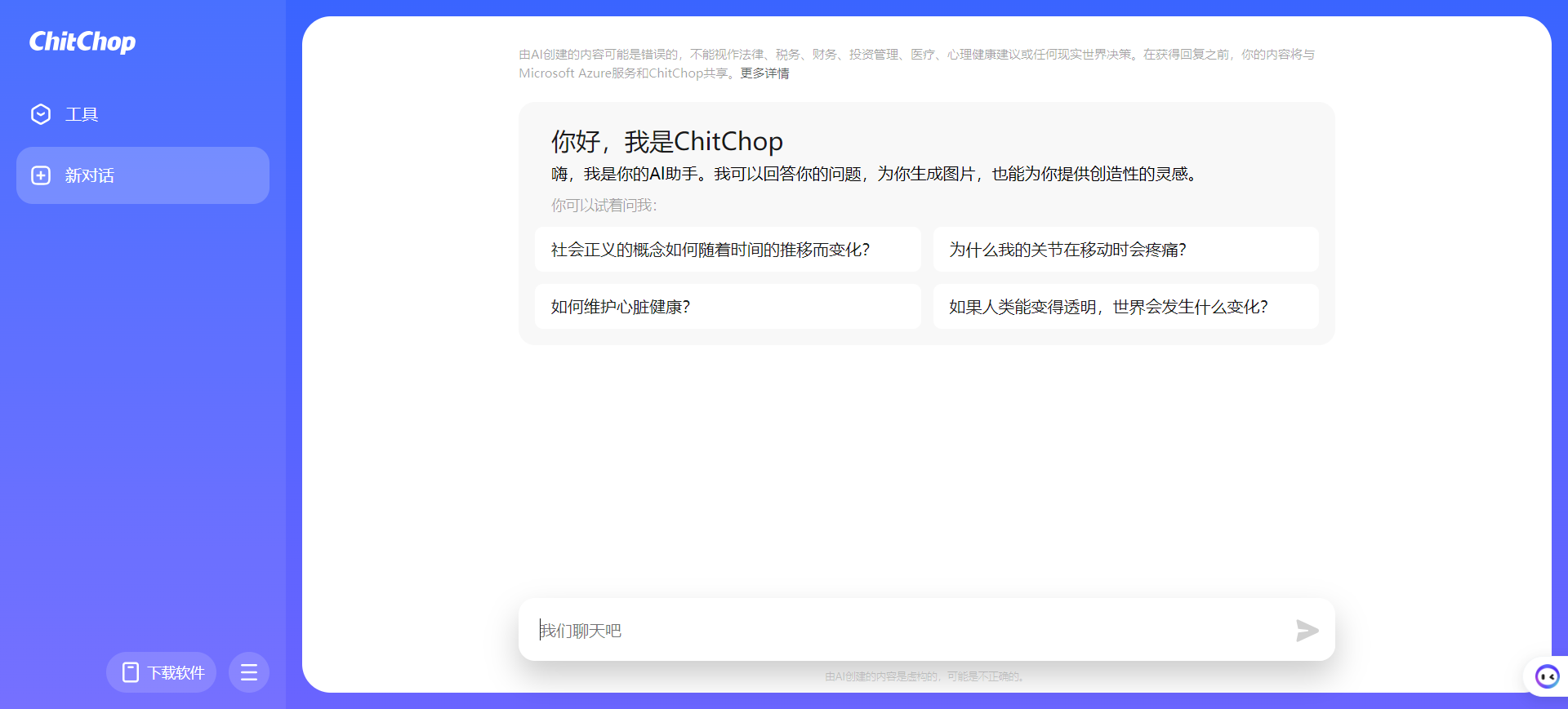 ChitChop是字节跳动在海外上线的一款免费大模型产品和人工智能助手工具箱。这款产品的目的是为用户提供丰富的智能机器人服务,从而在学习、工作和生活等多个方面为用户提供帮助。ChitChop是基于云雀大语言模型创建的AI小工具合集,其网页外观与抖音集团旗下AI产品“小悟空”有些许改动。