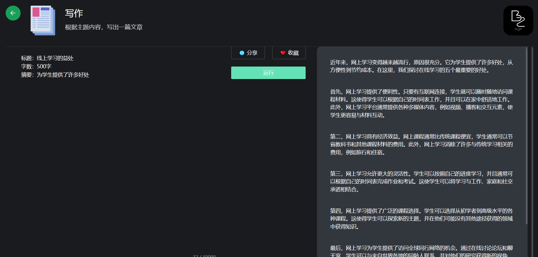 优质的内容生成:利用先进的语言模型,用户可以轻松地生成高质量的文章、故事或其他文本内容。