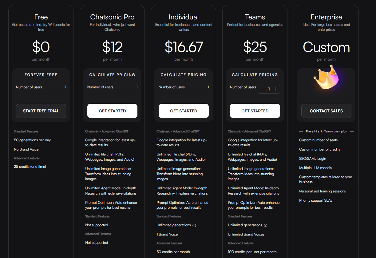 更详细的定价信息,可以查看Writesonic官网信息