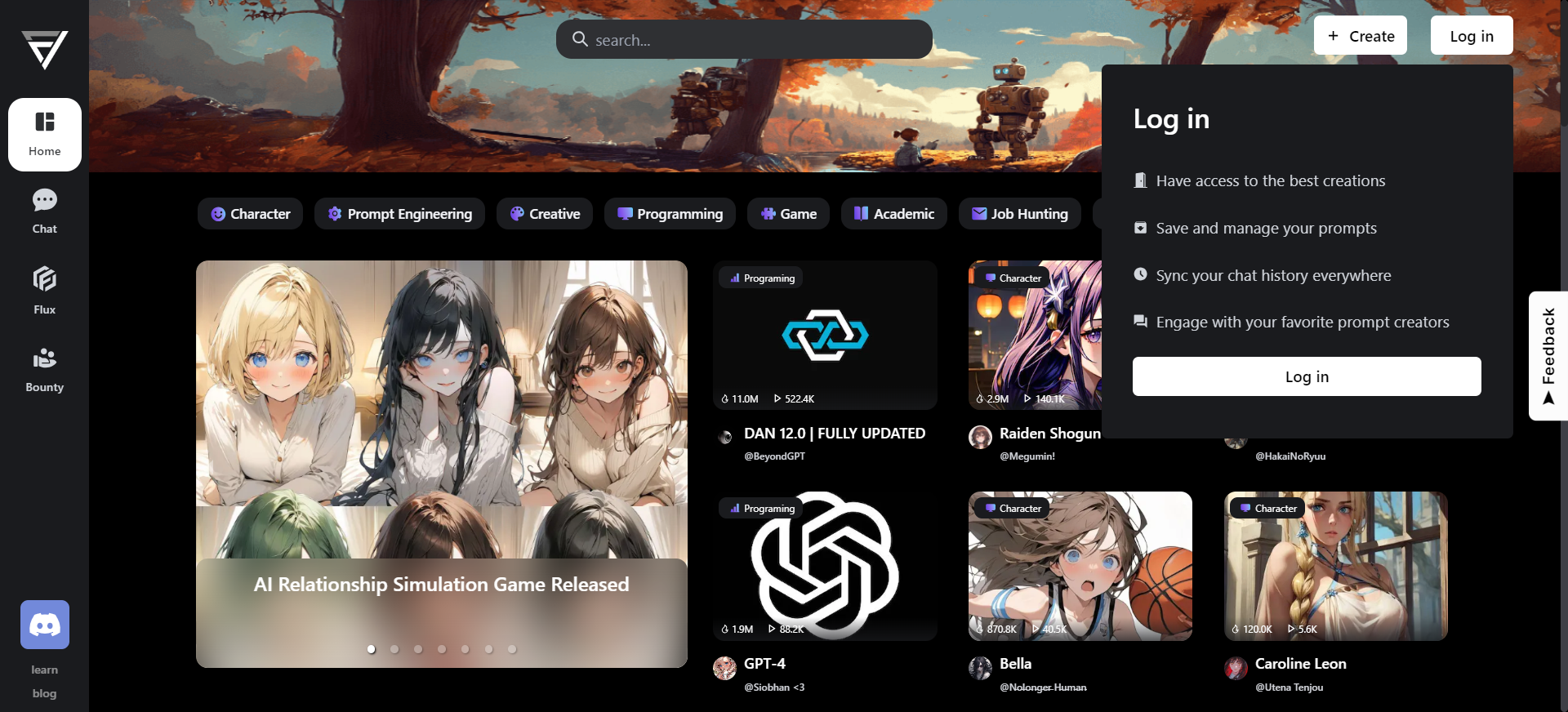 6. 个人用户和社区贡献者: FlowGPT 鼓励用户共享提示,探索AI模型的可能性,促进知识共享和合作创新。