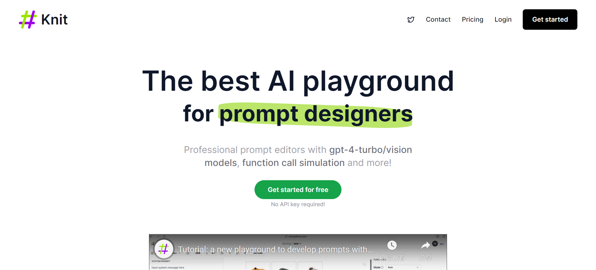 Knit 是一款专为提示设计师打造的最佳人工智能游乐场,配备专业提示编辑器和创新工具,包括 GPT-4 Turbo、视觉模型和函数调用模拟。作为终极 AI 提示组织器,其强大功能包括一体化 AI 提示管理工具,可存储、编辑和运行多种提示内容,并支持多个 AI 模型。作为 SaaS 软件,Knit 让团队轻松协作,存储、编辑和分享提示内容,提高团队创意开发的效率与便利。