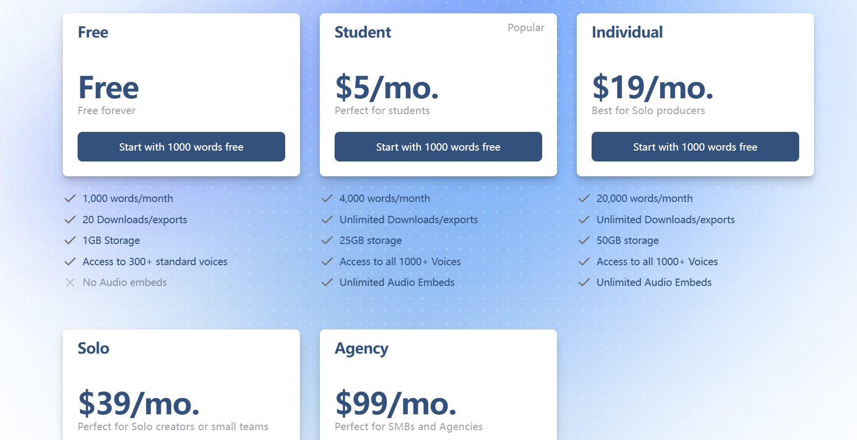 Listnr允许用户通过其文本转语音编辑器将文本内容转换为逼真的AI语音。同时,Listnr提供了一个包含1000多种声音的库,覆盖了142种不同的语音和方言,为用户提供了丰富的选择,以满足不用场景和需求的语音输出。