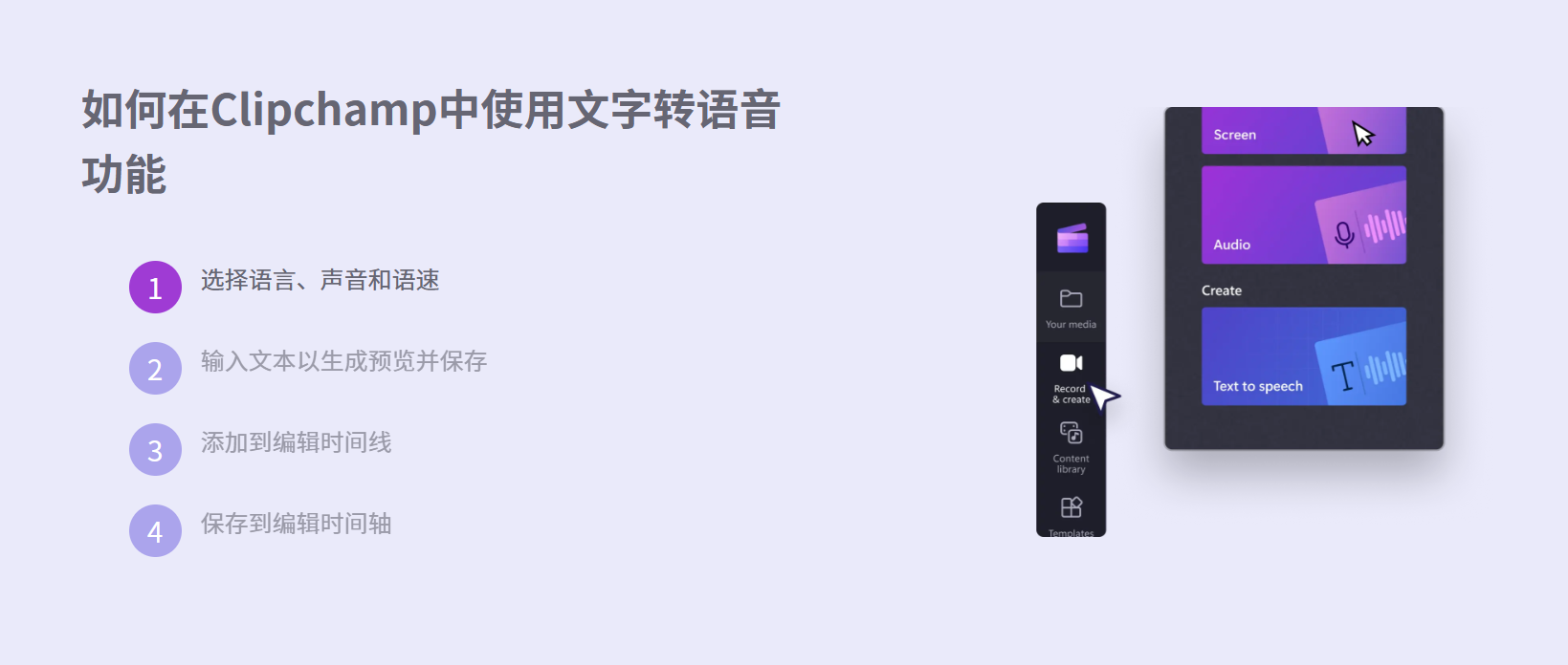 节省时间和精力:Clipchamp AI 旁白生成器能够自动将文字转换成语音,省去了手动录制或寻找专业配音演员的麻烦,大大节省了时间和精力。