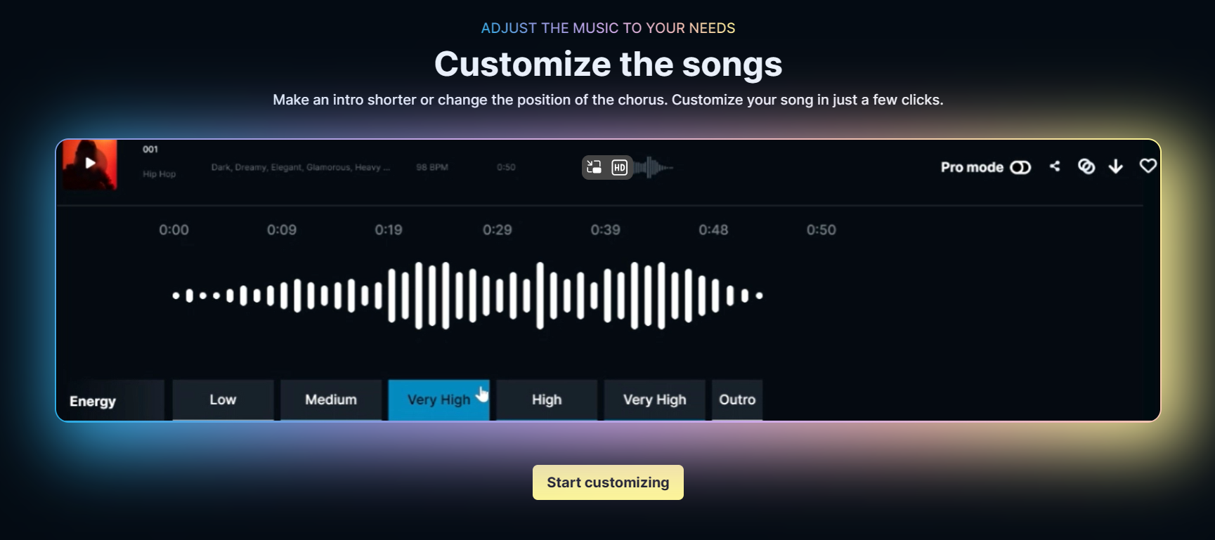 SOUNDRAW支持手动编辑。用户可以在SOUNDRAW网站上对音乐进行剪辑、变速、变调等操作,从而使音乐更符合自身需要。