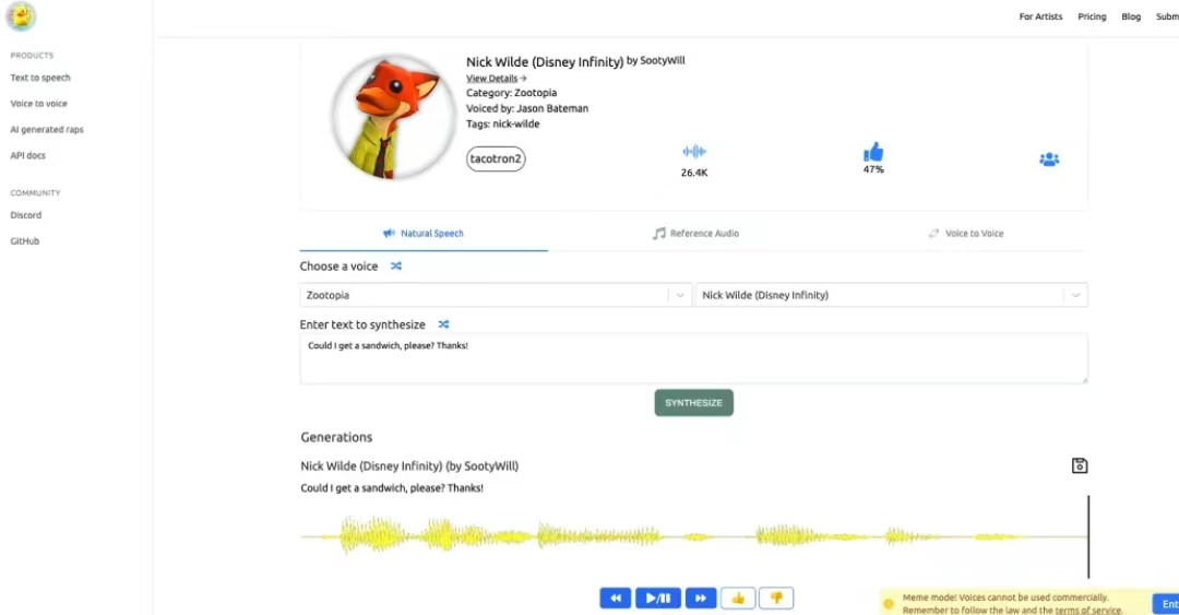如果您曾经出现过想要模仿名人或虚构人物的声音的想法,UberDuck AI 可以帮你实现。