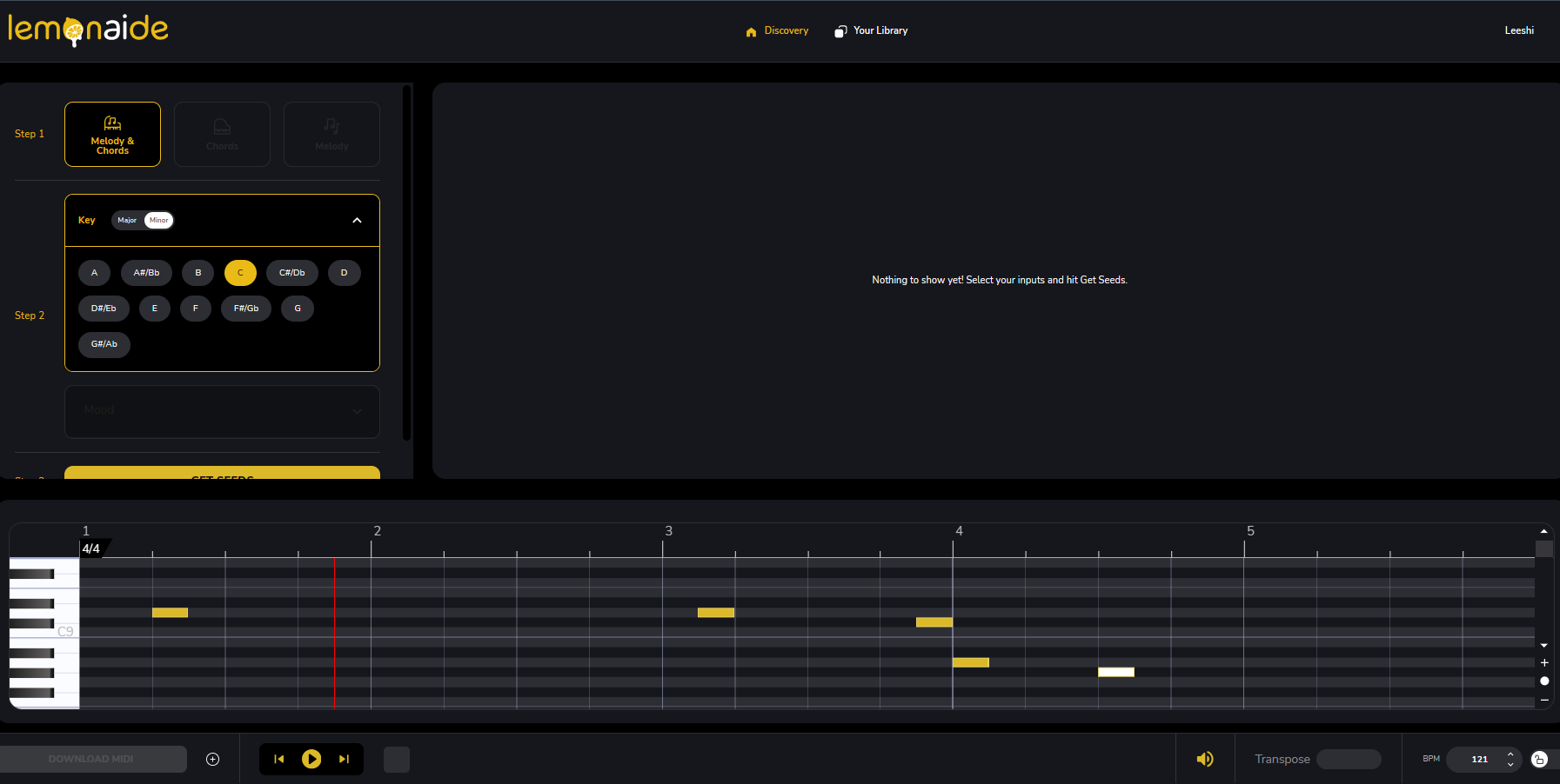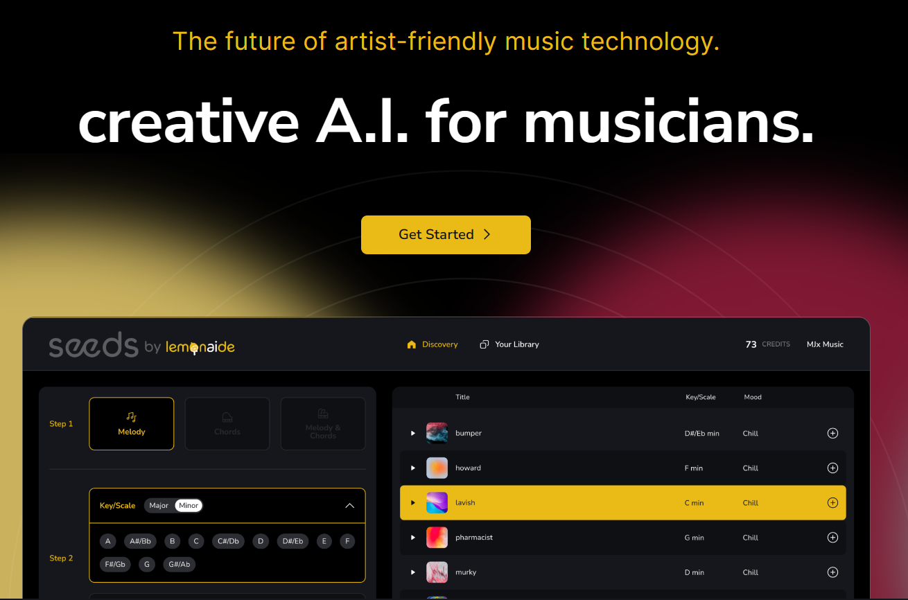 由嘻哈艺人Michael“MJ”Jacob于2021年创立,旨在利用人工智能技术帮助音乐创作者突破创作瓶颈,产生新颖的音乐想法。Lemonaide软件的核心功能是其AI驱动的种子生成器(Seeds Generator)。这个工具能够生成简洁的四小节MIDI文件,为音乐创作者提供初始的创作素材。它基于大量的音乐数据进行训练,能够生成数百万种不同的音乐组合,为艺术家提供灵感和创作起点。