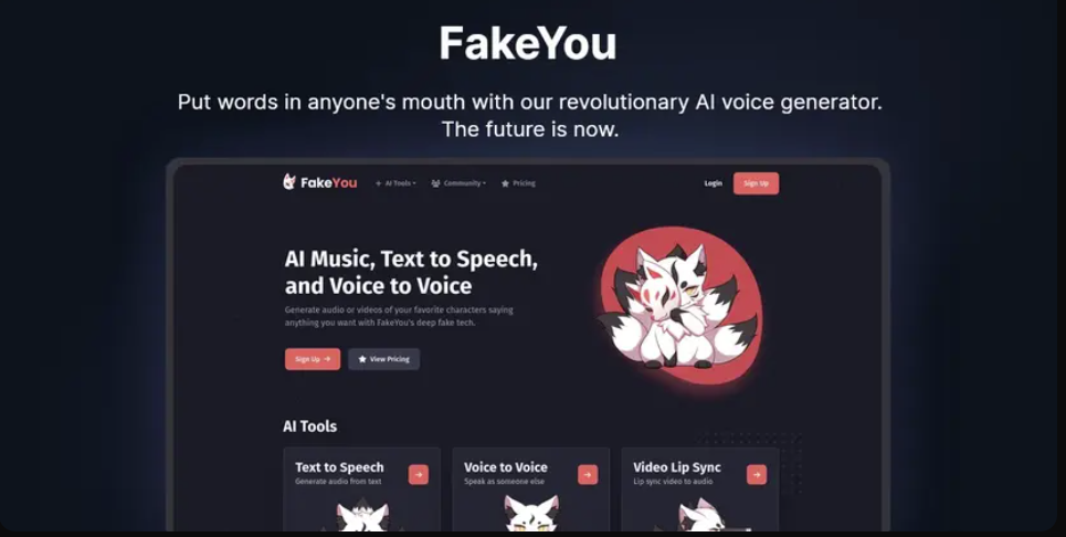 FakeYou 是一个人工智能驱动的平台,允许用户使用 Deepfake 技术将文本转换为语音或将录音转换为不同的声音。该服务提供文本到语音、语音到语音转换和视频口型同步。
