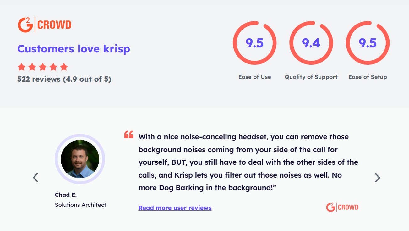 并且Krisp在知名评分网站上的评分也有着4.9/5的高分,这足以说明Krisp功能的强大与受欢迎的程度。