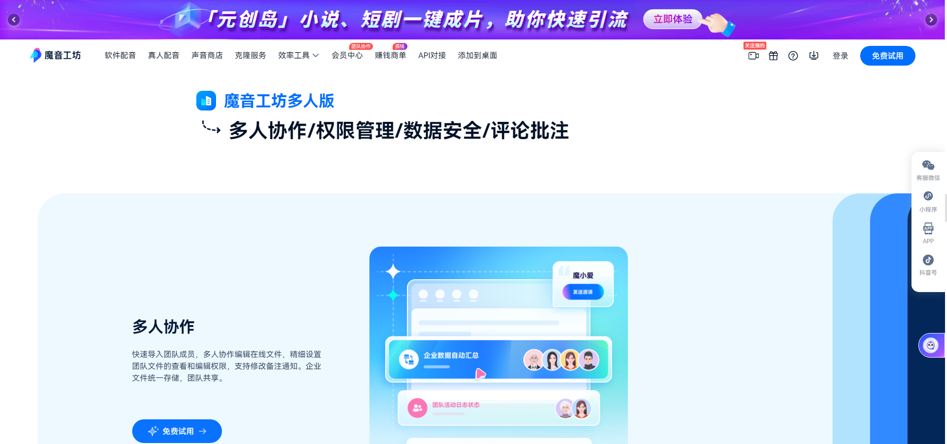 多人版团队会员: 面向团队创作者,所有全场声音会员功能均可使用,外加团队协作功能。