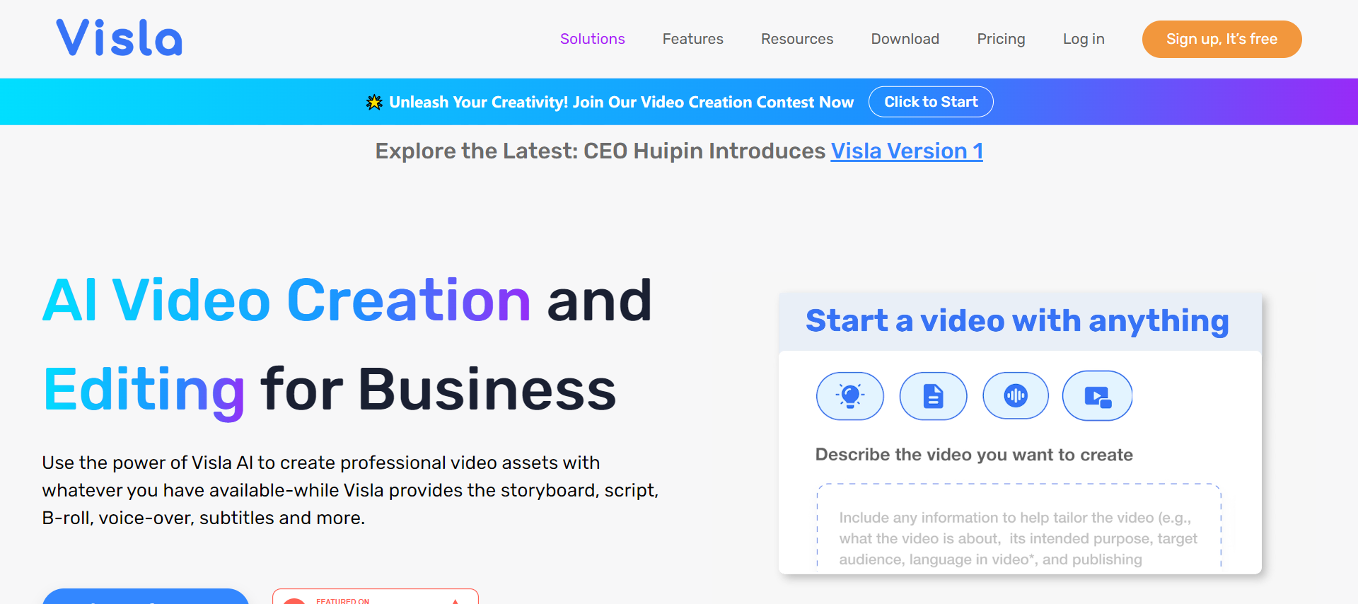 Visla 是一款全方位的视频叙事平台,为团队和个人提供便捷的创建、编辑和分享高质量视频的能力。凭借其强大的功能,Visla 简化了视频制作工作流程,让用户能够在一个便利的地方录制、编辑和协作视频。该平台提供基于人工智能的视频编辑器和视频生成器,使用户能够通过一键操作快速将创意转化为引人入胜的视频内容。此外,Visla 还提供了高级编辑工具,如去除填充词、暂停、提取剪辑、合并剪辑、剪切片段和添加配音等功能。用户还可以利用屏幕录制、视频录制、多摄像头录制,甚至使用手机作为网络摄像头。Visla提供了一个多功能工具箱,满足各种视频制作需求,是各类内容创作者的不可或缺的利器。