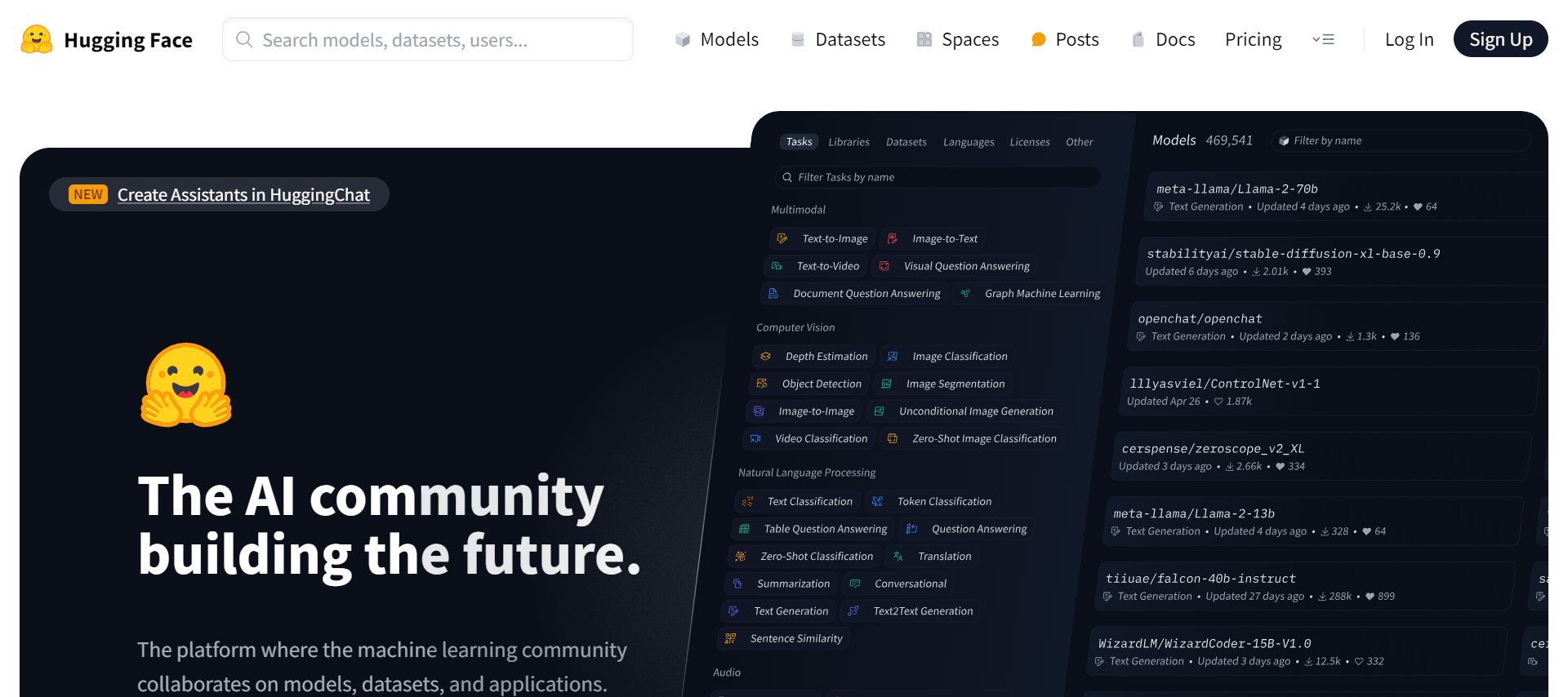 AI 社区:Hugging Face 建立了一个活跃的 AI 社区,吸引了来自全球的机器学习爱好者、研究人员和开发者。这个社区提供了丰富的资源、交流和合作机会,推动了机器学习技术的创新和发展。