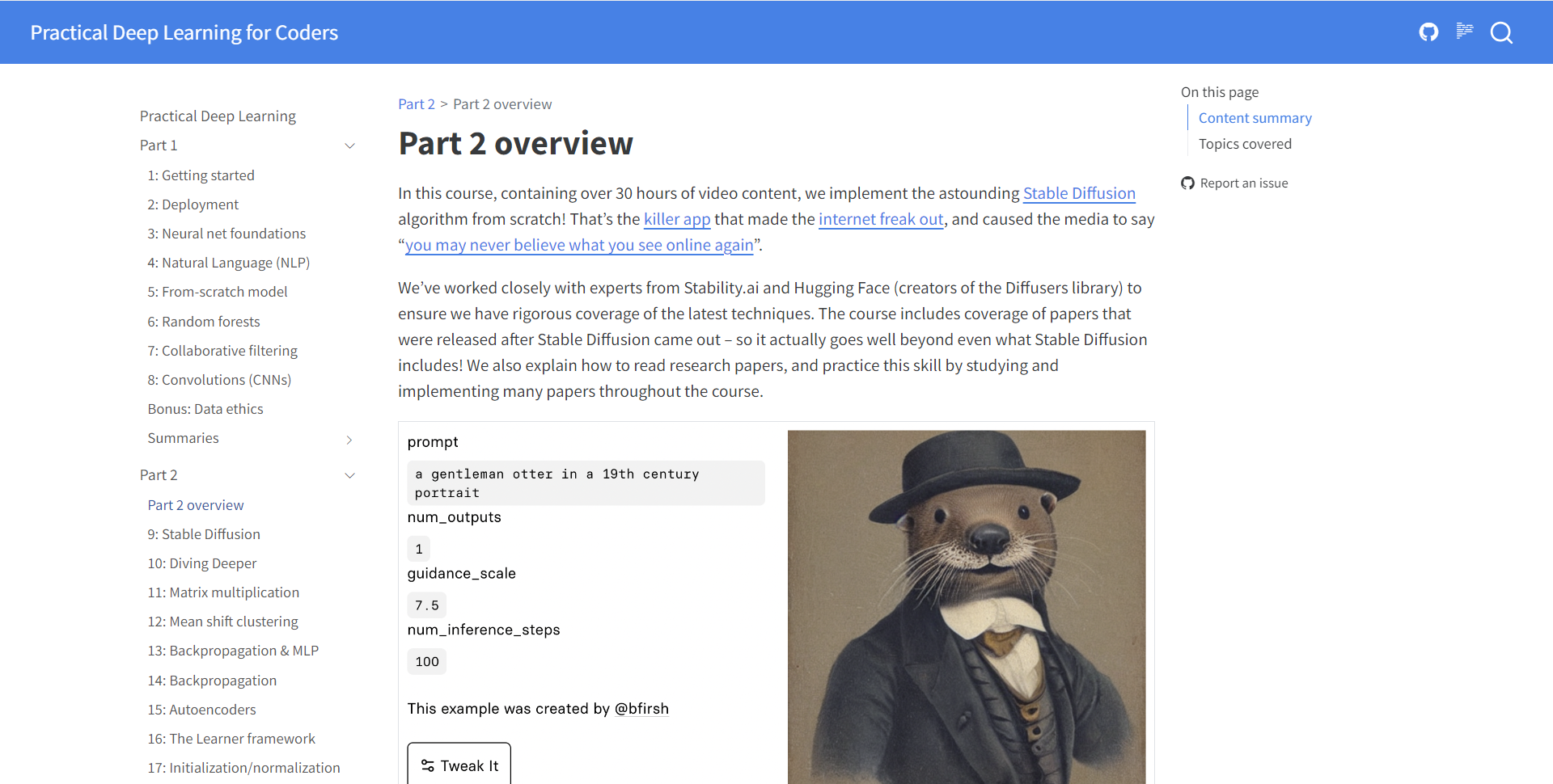 fast.ai 的课程内容涵盖了从基础知识到前沿技术的全面范围,包括计算机视觉、自然语言处理、推荐系统等多个领域,适合不同层次和需求的学习者。