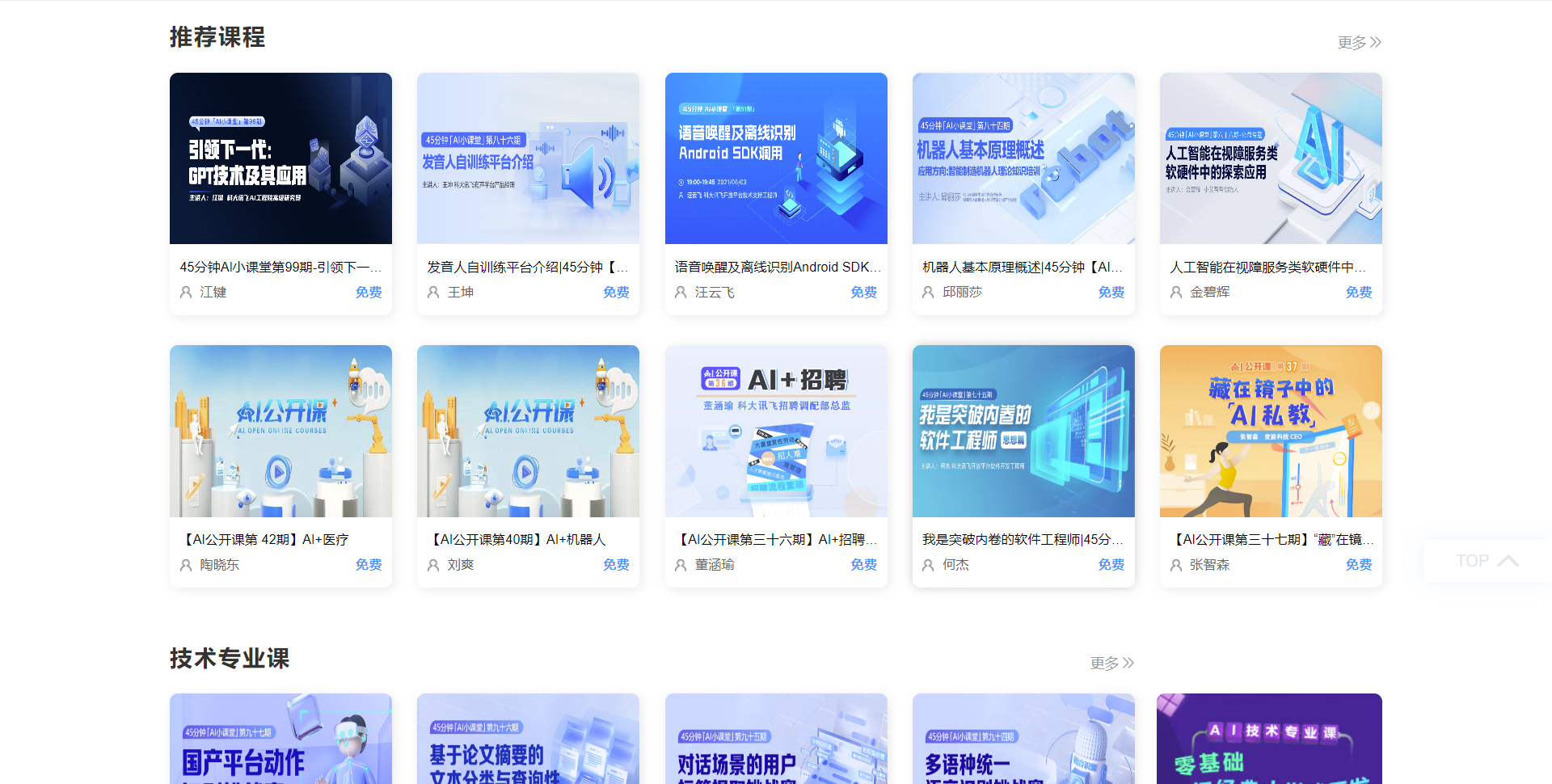 AI 大学堂是讯飞开放平台打造的人工智能专业学习,交流和培训平台,旨在为 AI 领域开发者、爱好者提供专业的课程、资源及服务支持,致力于与合作伙伴建立知识共享,合作共赢的美好生态。