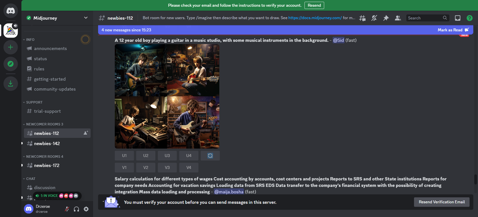 6. 按下回车键,等待AI生成图像。Midjourney将根据你的描述创建多个不同版本的图像。如果你不是订阅用户,按下回车键后会提示你购买会员以进行下一步的图像生成。
