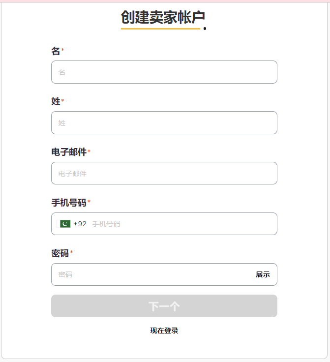 3.新用户需要填写申请表,完善个人信息;主要提供个人邮箱、公司地址、产品类型、银行账户、巴基斯坦电话号码等等内容。