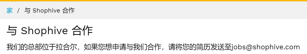 想要在Shophive平台上出售,达成合作,需要向平台发送邮件,递交申请。