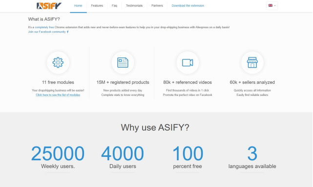 Asify是一个免费的Chrome浏览器扩展,你可以在这里下载。它能在你浏览AliExpress时,在产品页面上显示额外信息,提供有用的洞见,就像AliExpress Dropshipping Center一样,但不需要用其他工具。
