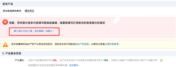 如果图片银行空间已满,且您在产品描述中添加了大量图片,可能导致发布失败。建议先删除一些图片以释放空间。