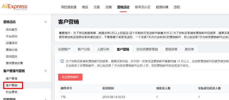 导读:本文介绍了使用营销邮件推广产品的步骤。首先,登录AliExpress后台,进入“营销活动-营销客户与管理-客户营销”。接着,点击“发送营销邮件”按钮,添加目标收件人并编辑邮件内容。然后,选择要推广的商品,最后确认并发送邮件。这一流程有助于向老买家推荐热卖或新产品,提高产品曝光和销售。营销邮件是向您的老买家推荐热卖或新产品等的邮件模版:1.点击进入【营销活动-