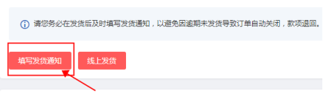 6 . 发货后,在订单详情页面点击【填写发货通知】