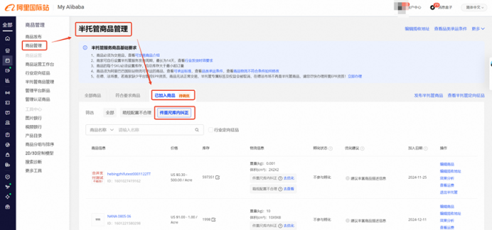 阿里巴巴国际站发布了《半托管商品件重尺表达规范及治理》规则,旨在提高半托管商品件重尺信息的准确性,保障买家体验,减少运费差异。规范要求商家在发布半托管商品时,必须准确填写商品的长宽高(含最小物流包装)和毛重,并按照物流包装静置平放后的实际尺寸进行测量。