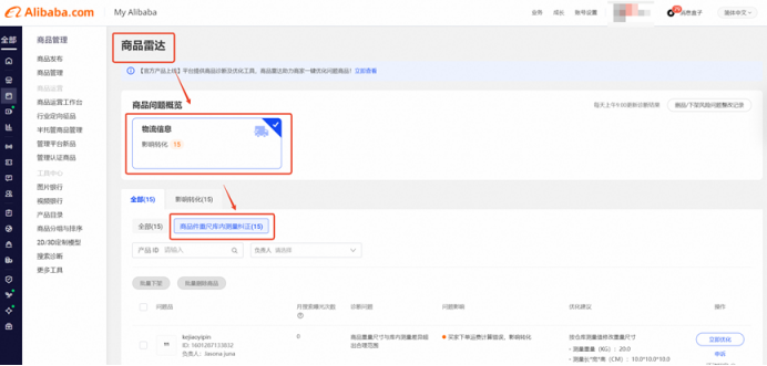 2.2治理范围:全部半托管商品,经平台检测后,库内实测后尺寸重量超过合理误差范围的商品将被平台纠正,同时纠正商品及相应订单信息将展示在“商品管理→商品雷达→物流信息→商品件重尺库内测量纠正”中。
