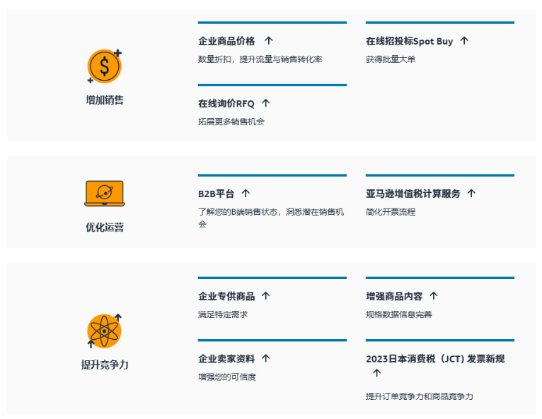 亚马逊企业购是亚马逊针对企业买家提供的线上采购业务。新型一站式跨境电商B2B模式,帮助中国卖家直接触达终端企业买家,去除中间商,以更高效率、更低成本掘金商采蓝海。