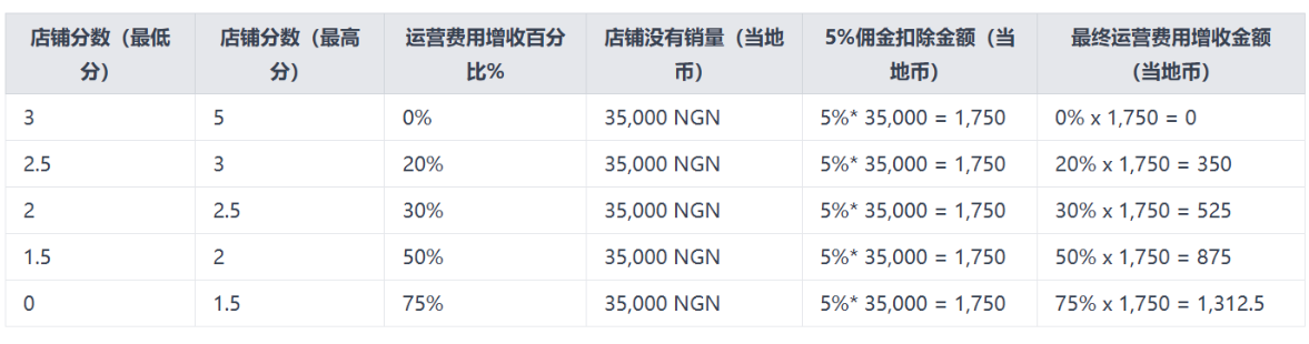 额外运营费用收取的示例如下(以尼日利亚为例):