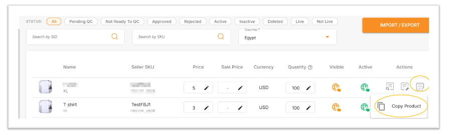 路径:Prodcut - ManagerProducts - ACtions - Copy product