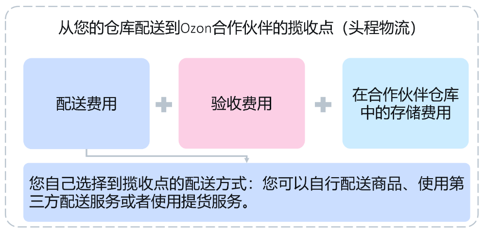 商品物流包括几个基本阶段:从供应商处配送给您,从您配送给合作伙伴,然后配送到揽收点,最后再配送给买家。每个阶段包含特定的费用: