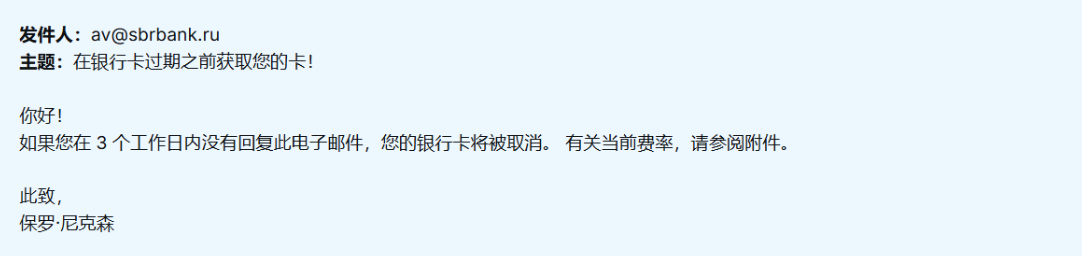 钓鱼邮件示例: