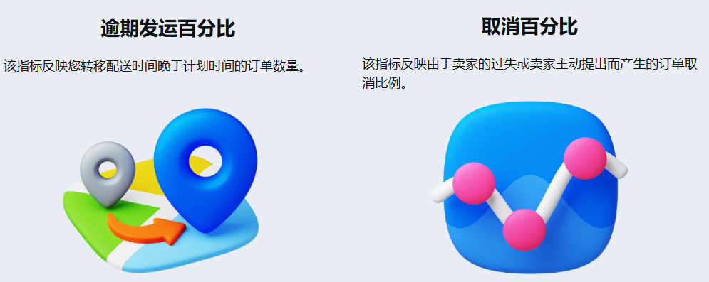 取消百分比和逾期发运百分比是专家们在系统内部使用的数据。这些数据对买家不可见,但对卖家可见。我们建议追踪这些指标并将其保持在较高水平,以避免封锁。