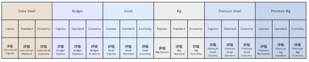 配送方式会在每个货件组别内根据三种配送速度之一进行单独比较,也就是说,评级会在货件组和速度的组合内单独计算。例如,Extra Small Express和Big Standard的组合将有各自的评级。