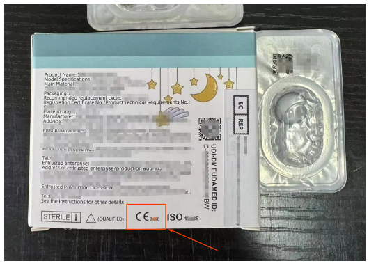 欧盟委员会为每个公告机构分配了一个独特的四位数编码,即该机构的识别号。根据欧盟法规,所有第III类个人防护装备、I类和II类医疗器械设备在其CE标志后都必须附上公告机构的识别号。可参考如下示例: