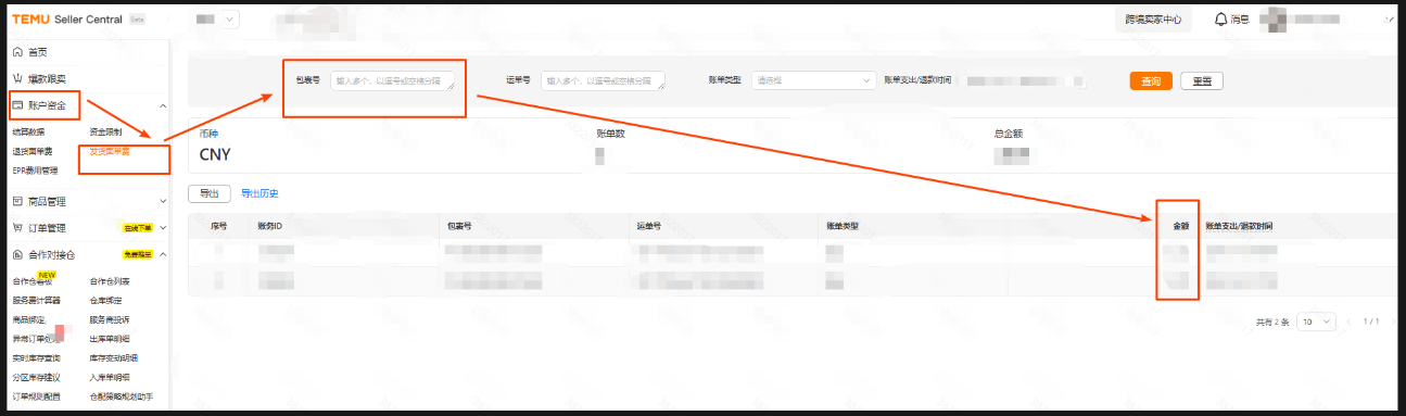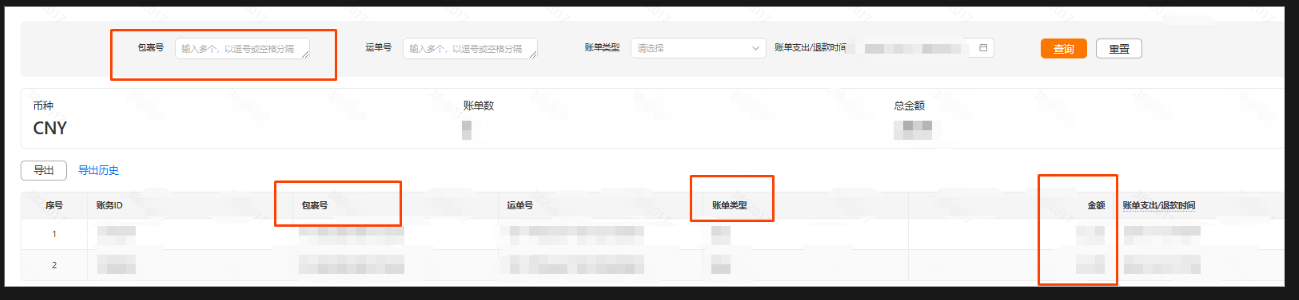 在发货面单费中通过搜索【包裹号】查看实际扣费情况