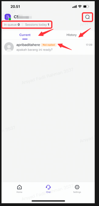 “当前”列表显示您正在与之聊天的客户,“当前”后面的数字表示当前聊天数量。