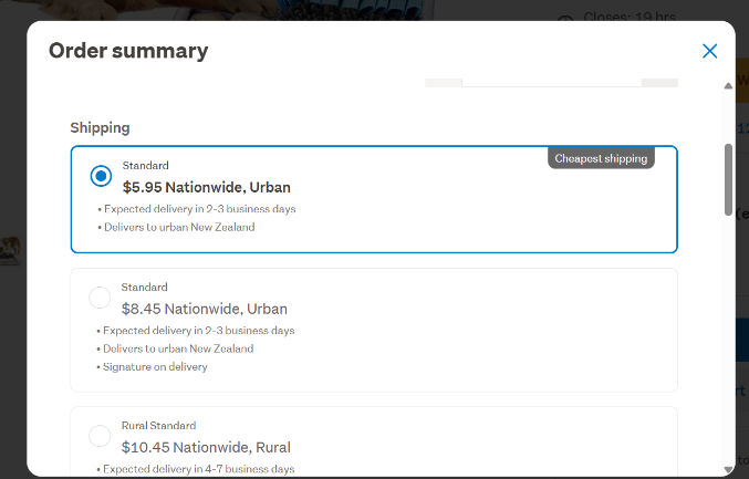 当您出价或选择“立即购买”时,您需要选择运送方式。如果您赢得商品或完成订单,所选运送方式将自动计入您的总付款金额中。