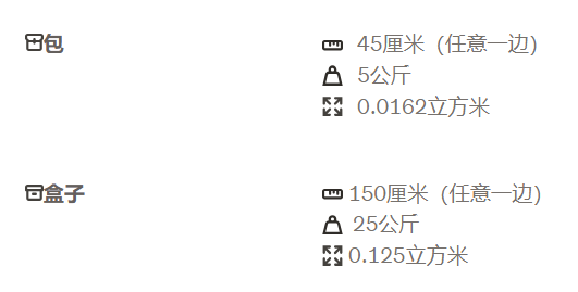 包裹尺寸限制