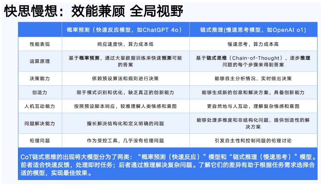 介绍了推理模型相关知识。推理大模型强化推理、逻辑分析等能力,如 Deep Seek - R1;非推理大模型侧重语言生成等,如 GPT - 3。还对比了推理模型与通用模型、概率预测和链式推理模型在多方面的差异,帮助人们按需选择合适模型。