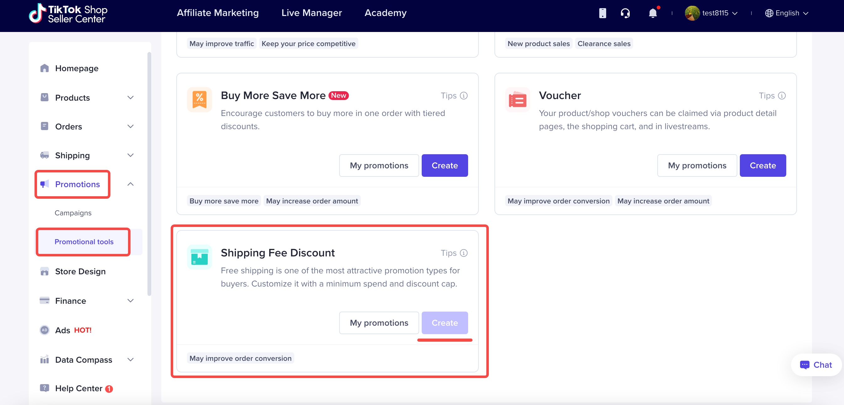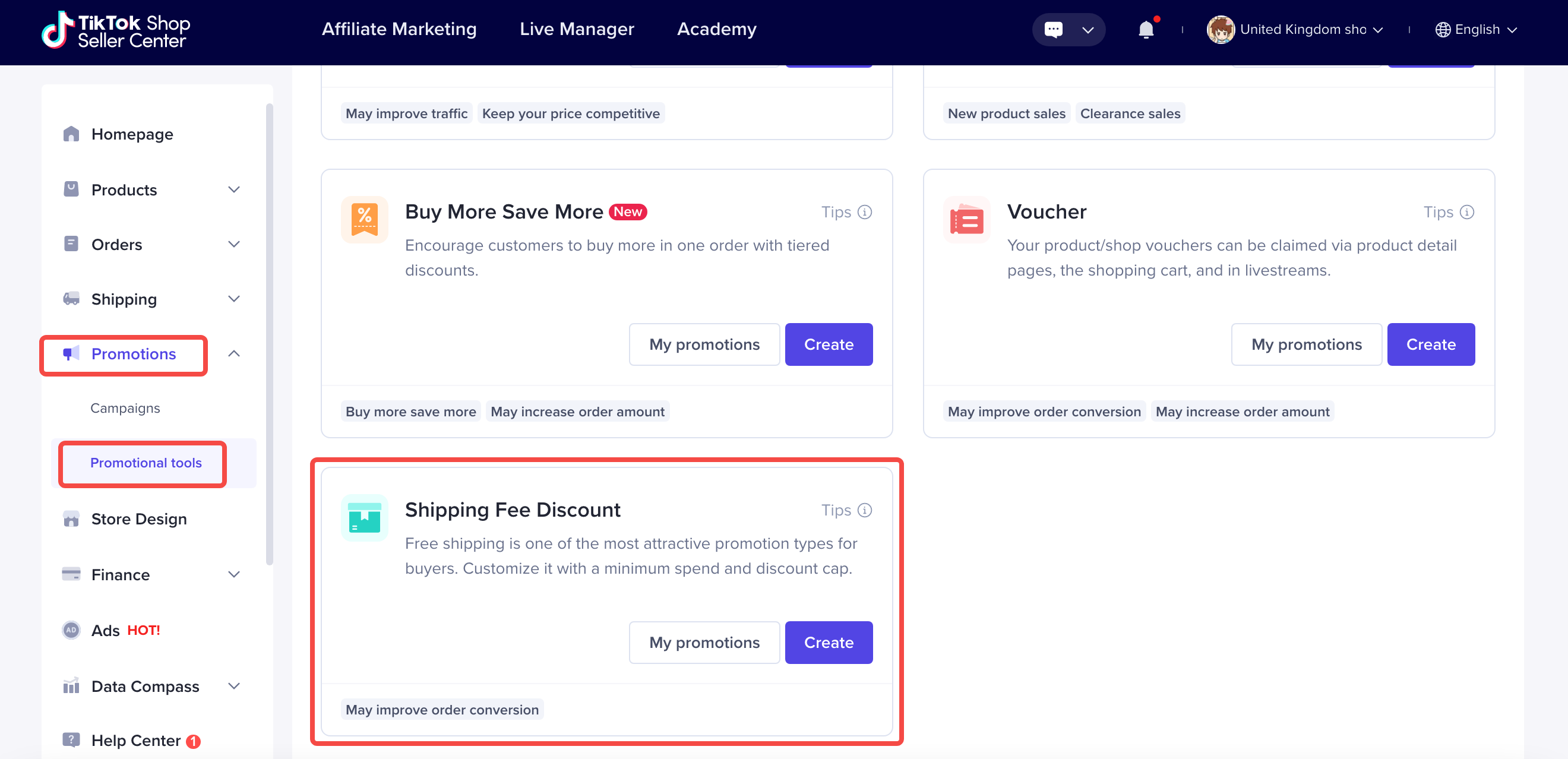 6 浏览TikTok Shop感谢卖家始终如一地为买家提供高质量的商品和服务。我们为卖家提供了各种营销工具(如买家运费折扣),帮助其提高买家满意度。卖家必须通过新手村并保持账户余额为正,才能使用这些营销工具。