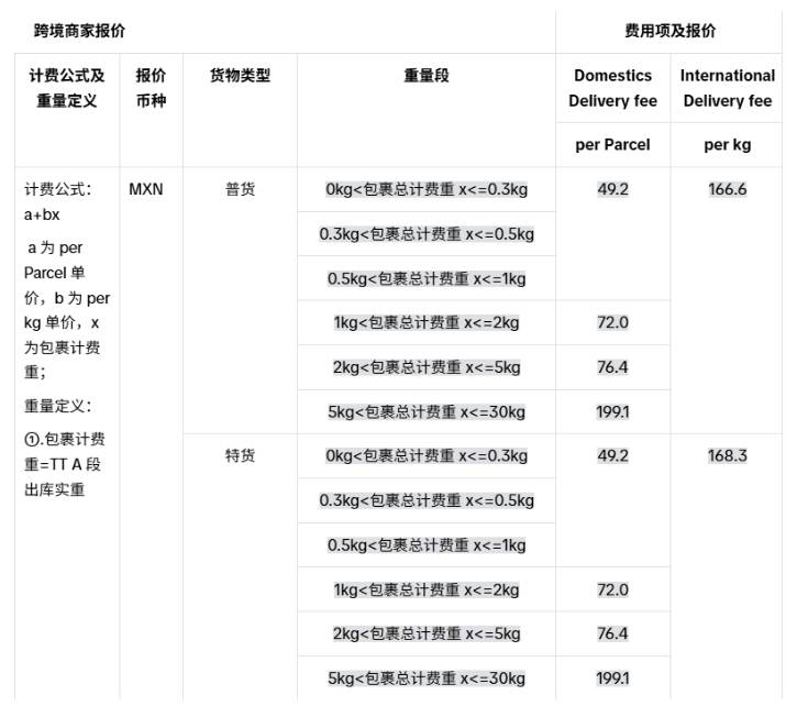 自2025年7月25日16:00(GMT+8)起,最新的墨西哥跨境商家物流运费价卡如下: