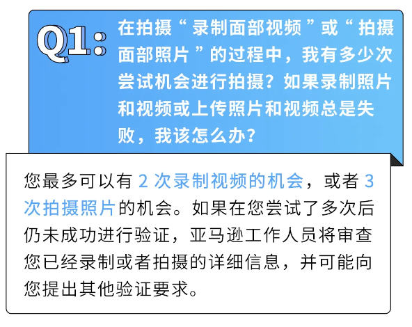 身份资料提交完毕后,就需要您进行身份验证。亚马逊提供两种身份验证方式供您选择——拍摄面部照片、录制面部视频。
