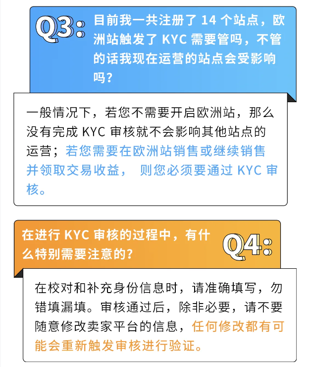根据欧洲法律规定,若卖家需要在亚马逊欧洲站销售或继续销售并领取交易收益,则需要向亚马逊提供自己及其业务的信息,即卖家资质审核(Know Your Customer,KYC)。