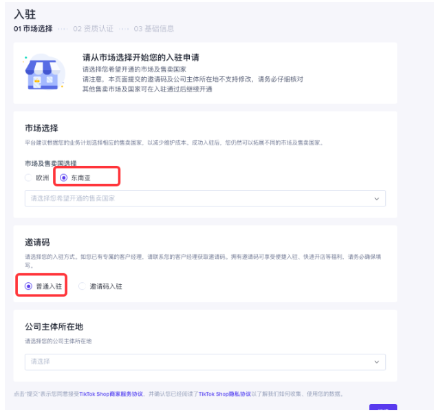 1.市场选择普通入驻:进入到“市场及售卖国选择”,选择希望开通的售卖国家