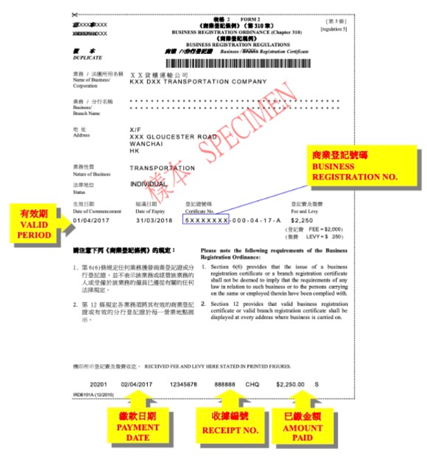 3)公司名称-中文4)公司名称-英文5)公司注册证明书编号,7位数字校验6)注册地址,和商业登记证的地址保持一致7)公司注册证明书注册日期 ,公司注册证明书所罗列的注册时间8)商业登记证届满日期