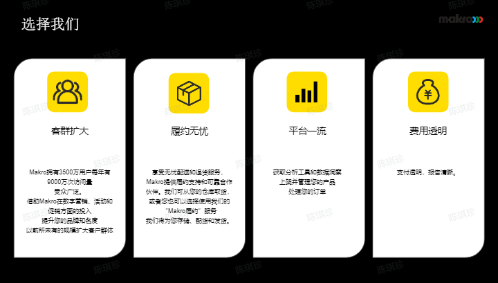 沃尔玛高效物流方案对接:我们将协助您理解和对接Makro整合的沃尔玛“全球统一履约”系统。该系统已帮助其80%的订单实现两日达,并正朝当日/次日达目标迈进,能显著优化您的配送体验。