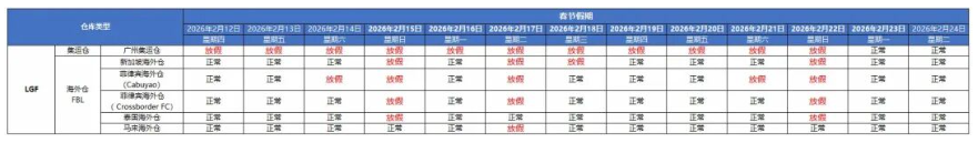 春节假期将至, Lazada跨境店履约时效、物流及在线客服时间安排如下: