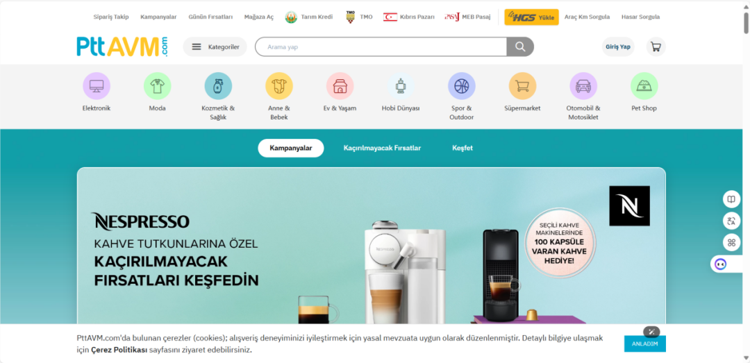 10 浏览导读:PttAVM是土耳其的一个在线零售商,提供多类别的产品,包括电子产品、母婴用品、时尚、运动户外、家居改善、汽车、杂货和必需品、宠物用品等。PttAVM成立于2012年,位于土耳其的Cankaya地区,它的主要竞争对手包括亚马逊、Hepsiburada和Trendyol,并且它在169个活跃竞争对手中排名前五。公司既积极竞争敢于挑战又乐于合作寻求共赢,PttAVM还与土耳其的一些机构合作,如TarımKrediKooperatifler