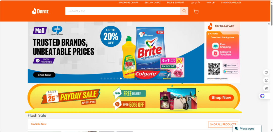 11 浏览导读:Daraz是南亚地区领先的电商平台,成立于2012年,业务覆盖南亚巴基斯坦,孟加拉国,斯里兰卡,尼泊尔,缅甸5个国家。Daraz全平台拥有3000万+月活用户,为超过5亿人口提供服务,是南亚地区最受欢迎的在线购物网站之一。Daraz平台以提供多样化的商品而闻名,从日常必需品到高端电子产品,包括但不限于电子产品、时尚服饰、家居用品等,几乎涵盖了所有类别。它以用户友好的界面、