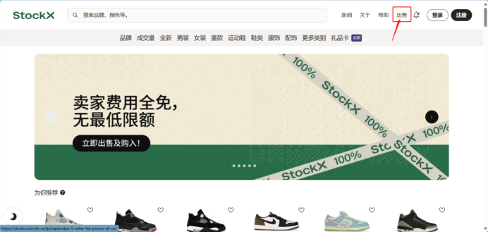 1.进入官网点击“出售”